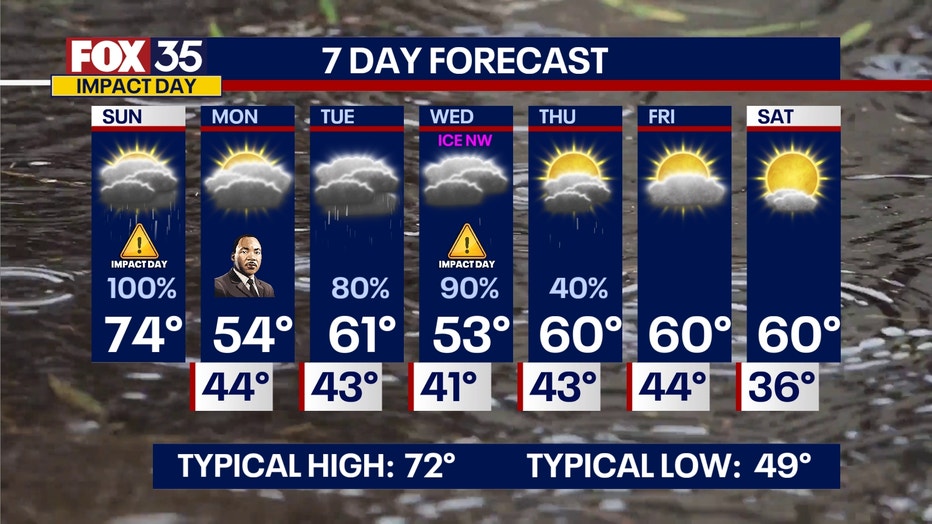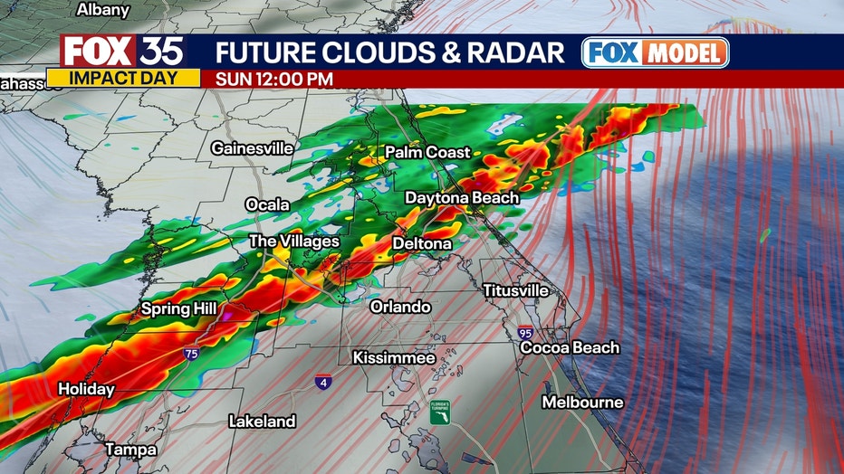 ORLANDO, Fla. - A strong cold front is moving through the region today, bringing torrential rain and strong to severe storms. With that, Sunday is an IMPACT DAY. Gusty wind is the main concern with these storms, but we can't rule out a spin-up tornado.