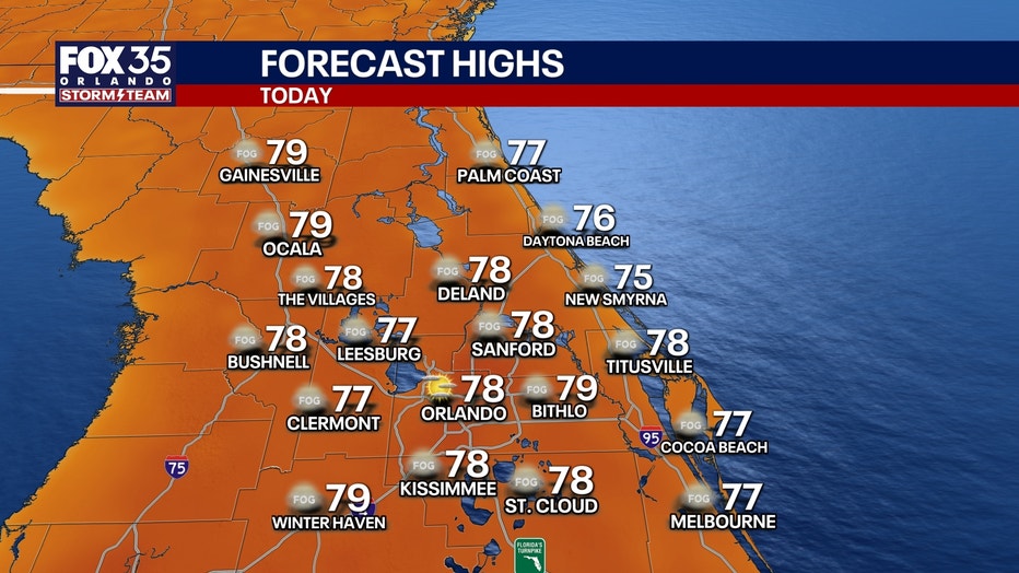 ORLANDO, Fla. - The warmth sticks around today with temps soaring back up close to 80°. With this area of high pressure essentially parked overhead, today will be similar to Saturday.