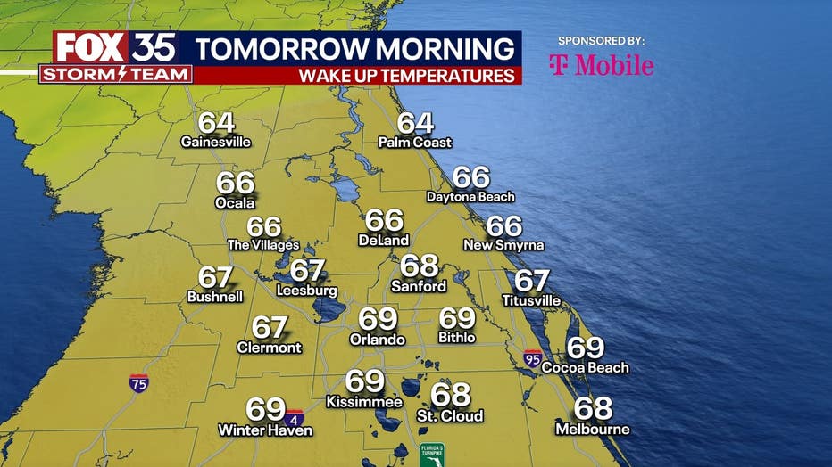 Highs will range from the 70s to low 80s from north to south due to more clouds and rain early north of Orlando.