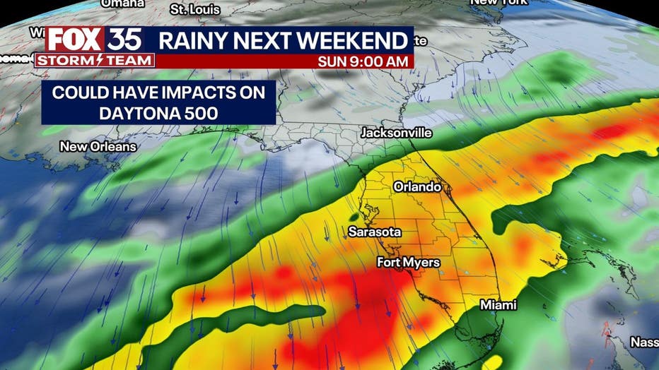 Attention turns to our next system that will move across the Southeast to begin the week. During the daytime Monday, it will be dry in Central Florida. It’ll be warm and breezy with partly cloudy skies and temperatures in the mid 80s. The cold front will arrive late Monday night into Tuesday morning. A few isolated storms will be possible to the north of Ocala Monday evening with showers late Monday into Tuesday farther south. We can not rule out isolated severe weather late Monday for our northern communities with wind the main risk for now. Tuesday features clearing with gusty winds. Looking ahead to next weekend, which is the Daytona 500 -- odds favor there being at least some rain, thunderstorms, and strong winds at some point that weekend. European model has Sunday, February 18 as a washout, the GFS model has things a little bit drier and more of the rain toward north. It’s early, and things will change, but at this point, it appears as if at least some weather will be an impact to the Daytona 500 this year next weekend.