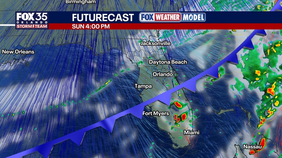 The warming trend continues into Sunday ahead of our next cold front. This is slated to move in later in the evening on Sunday. Temperatures look to top out close to 80° around Orlando, which is around 5° above average for this time of year.