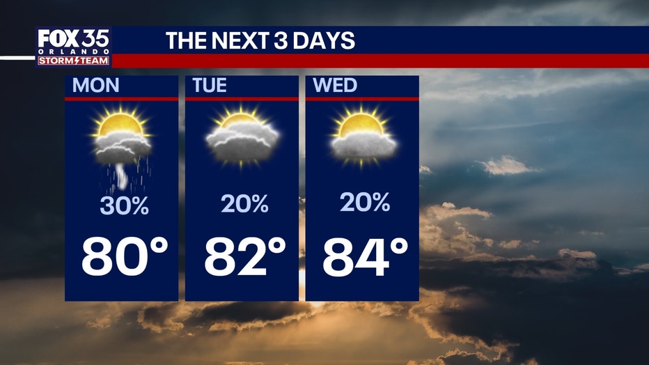 Temperatures will be back to near normal levels to start the work week, with highs in the low 80s for Monday and Tuesday. By Wednesday, we'll climb into the mid 80s with highs before eventually approaching the upper 80s by Friday.