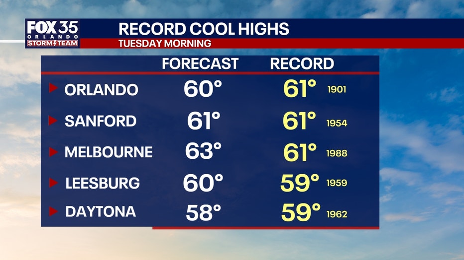 - OrlandoToday's forecast: 60°Previous record: 61° (1901)